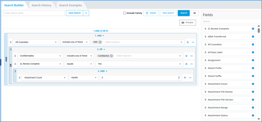 Search Builder updates. Enhanced the Search Builder to provide a more intuitive and user-friendly experience. The update includes a dedicated pane for field selection, clearer operator labels, improved visual indicators for grouped conditions, the ability to preview the search in both technical and natural language, and better placement of controls for streamlined interaction.